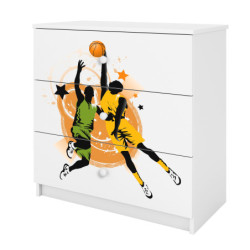 Komoda zawiera 3 pojemne szuflady o szerokości 69,4 cm i głębokości 33 cm, które są zamontowane na prowadnicach kulkowych. Dopełnieniem całości jest kolorowy obrazek w formie naklejki, który pokrywa front komody.
