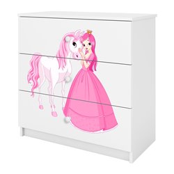 Komoda Babydreams jest wykonana z wysokiej jakości płyty meblowej o grubości 18 mm. Dostępna jest w kilku wariantach kolorystycznych oraz kilkunastu obrazkowych.