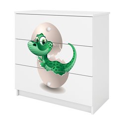 Komoda zawiera 3 pojemne szuflady o szerokości 69,4 cm i głębokości 33 cm, które są zamontowane na prowadnicach kulkowych. Dopełnieniem całości jest kolorowy obrazek w formie naklejki, który pokrywa front komody.
