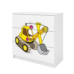 Komoda Babydreams jest wykonana z wysokiej jakości płyty meblowej o grubości 18 mm. Dostępna jest w kilku wariantach kolorystycznych oraz kilkunastu obrazkowych.