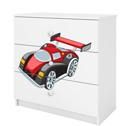 Komoda zawiera 3 pojemne szuflady o szerokości 69,4 cm i głębokości 33 cm, które są zamontowane na prowadnicach kulkowych. Dopełnieniem całości jest kolorowy obrazek w formie naklejki, który pokrywa front komody.
