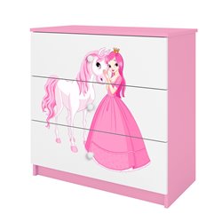 Komoda Babydreams jest wykonana z wysokiej jakości płyty meblowej o grubości 18 mm. Dostępna jest w kilku wariantach kolorystycznych oraz kilkunastu obrazkowych.