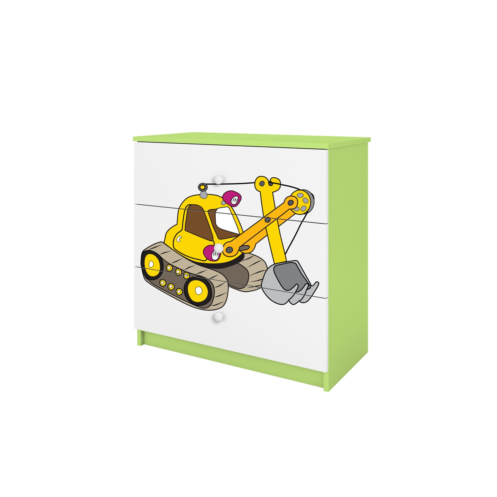 Komoda Babydreams jest wykonana z wysokiej jakości płyty meblowej o grubości 18 mm. Dostępna jest w kilku wariantach kolorystycznych oraz kilkunastu obrazkowych.