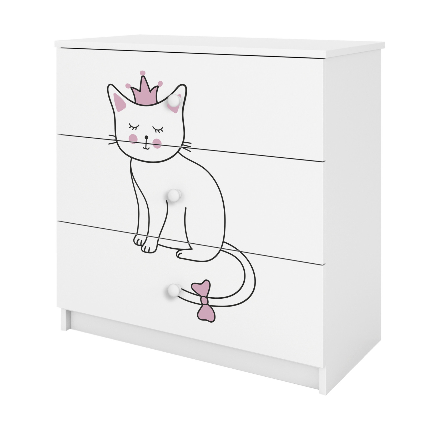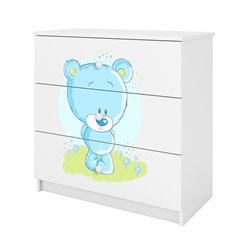 Komoda Babydreams jest wykonana z wysokiej jakości płyty meblowej o grubości 18 mm. Dostępna jest w kilku wariantach kolorystycznych oraz kilkunastu obrazkowych.