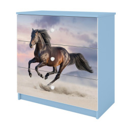 Komoda zawiera 3 pojemne szuflady o szerokości 69,4 cm i głębokości 33 cm, które są zamontowane na prowadnicach kulkowych. Dopełnieniem całości jest kolorowy obrazek w formie naklejki, który pokrywa front komody.