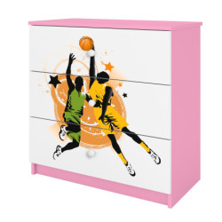 Komoda Babydreams jest wykonana z wysokiej jakości płyty meblowej o grubości 18 mm. Dostępna jest w kilku wariantach kolorystycznych oraz kilkunastu obrazkowych.