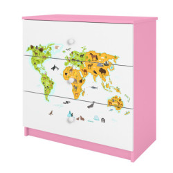 Komoda Babydreams jest wykonana z wysokiej jakości płyty meblowej o grubości 18 mm. Dostępna jest w kilku wariantach kolorystycznych oraz kilkunastu obrazkowych.