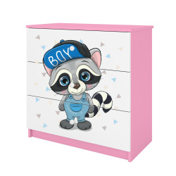 Komoda Babydreams jest wykonana z wysokiej jakości płyty meblowej o grubości 18 mm. Dostępna jest w kilku wariantach kolorystycznych oraz kilkunastu obrazkowych.