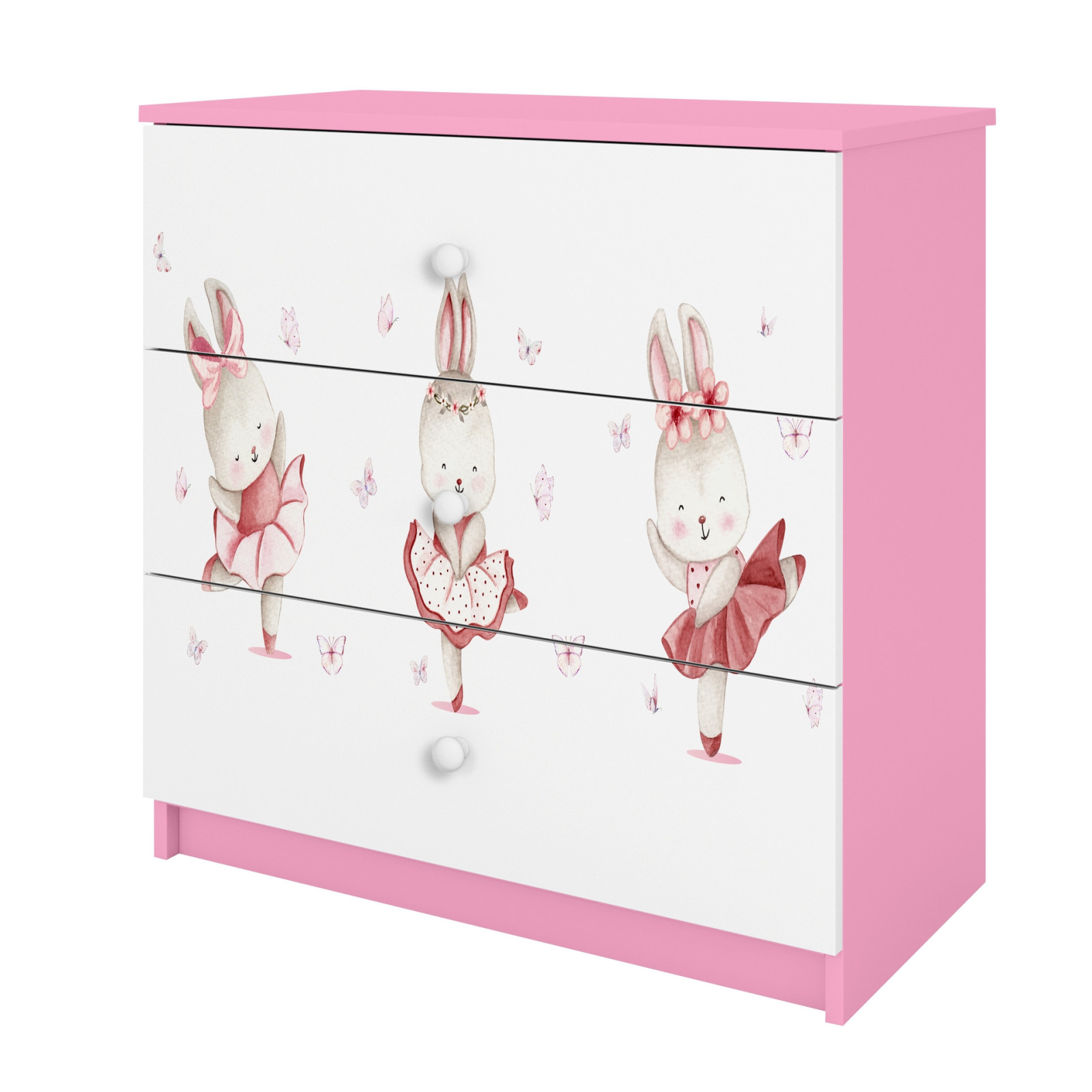 Komoda babydreams różowa Króliczki z motylkami