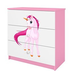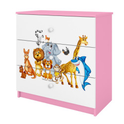 Komoda Babydreams jest wykonana z wysokiej jakości płyty meblowej o grubości 18 mm. Dostępna jest w kilku wariantach kolorystycznych oraz kilkunastu obrazkowych.