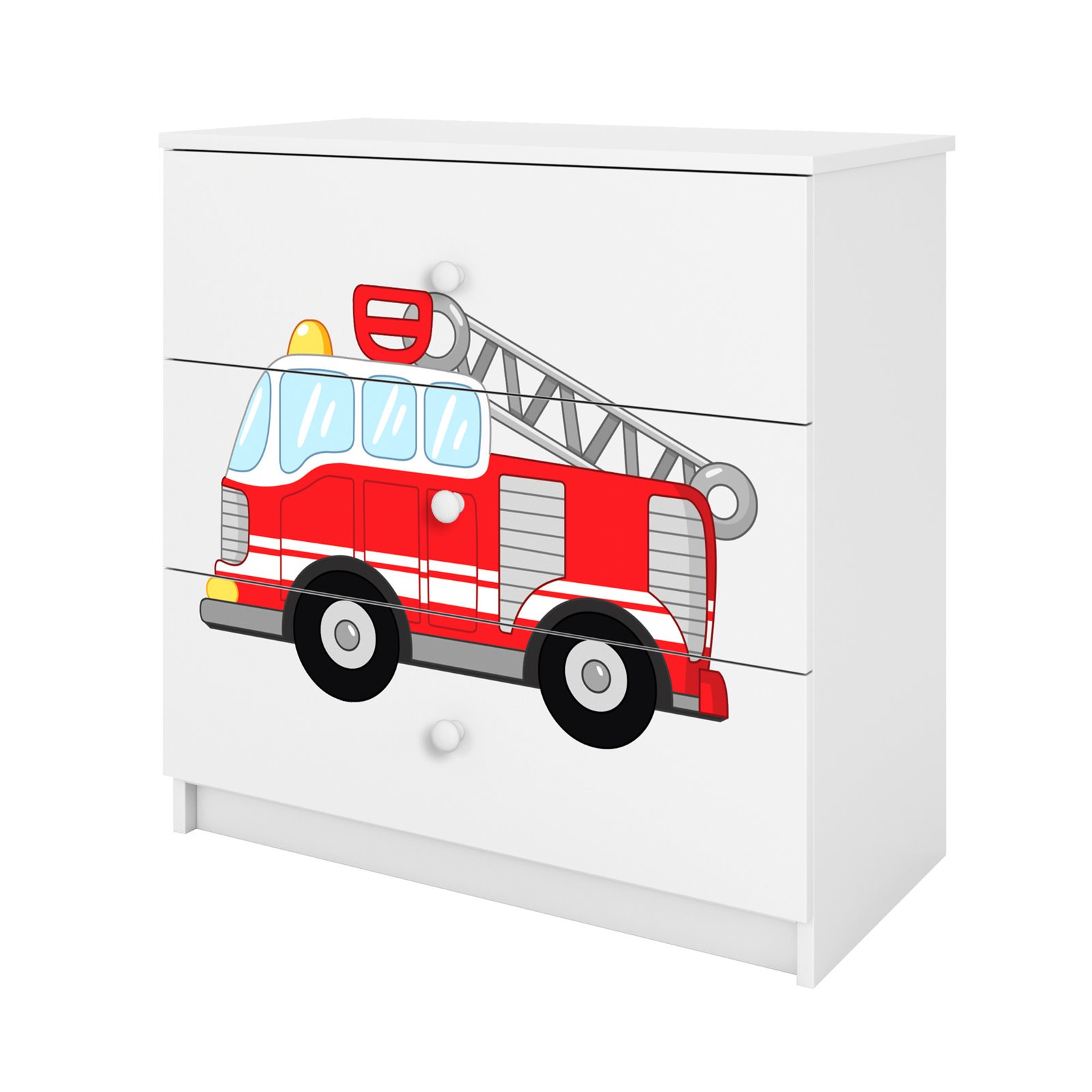 Komoda zawiera 3 pojemne szuflady o szerokości 69,4 cm i głębokości 33 cm, które są zamontowane na prowadnicach kulkowych. Dopełnieniem całości jest kolorowy obrazek w formie naklejki, który pokrywa front komody.