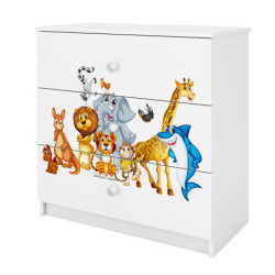 Komoda zawiera 3 pojemne szuflady o szerokości 69,4 cm i głębokości 33 cm, które są zamontowane na prowadnicach kulkowych. Dopełnieniem całości jest kolorowy obrazek w formie naklejki, który pokrywa front komody.
