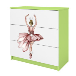 Komoda Babydreams jest wykonana z wysokiej jakości płyty meblowej o grubości 18 mm. Dostępna jest w kilku wariantach kolorystycznych oraz kilkunastu obrazkowych.