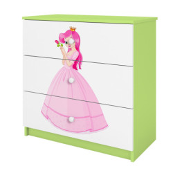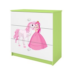 Komoda Babydreams jest wykonana z wysokiej jakości płyty meblowej o grubości 18 mm. Dostępna jest w kilku wariantach kolorystycznych oraz kilkunastu obrazkowych.