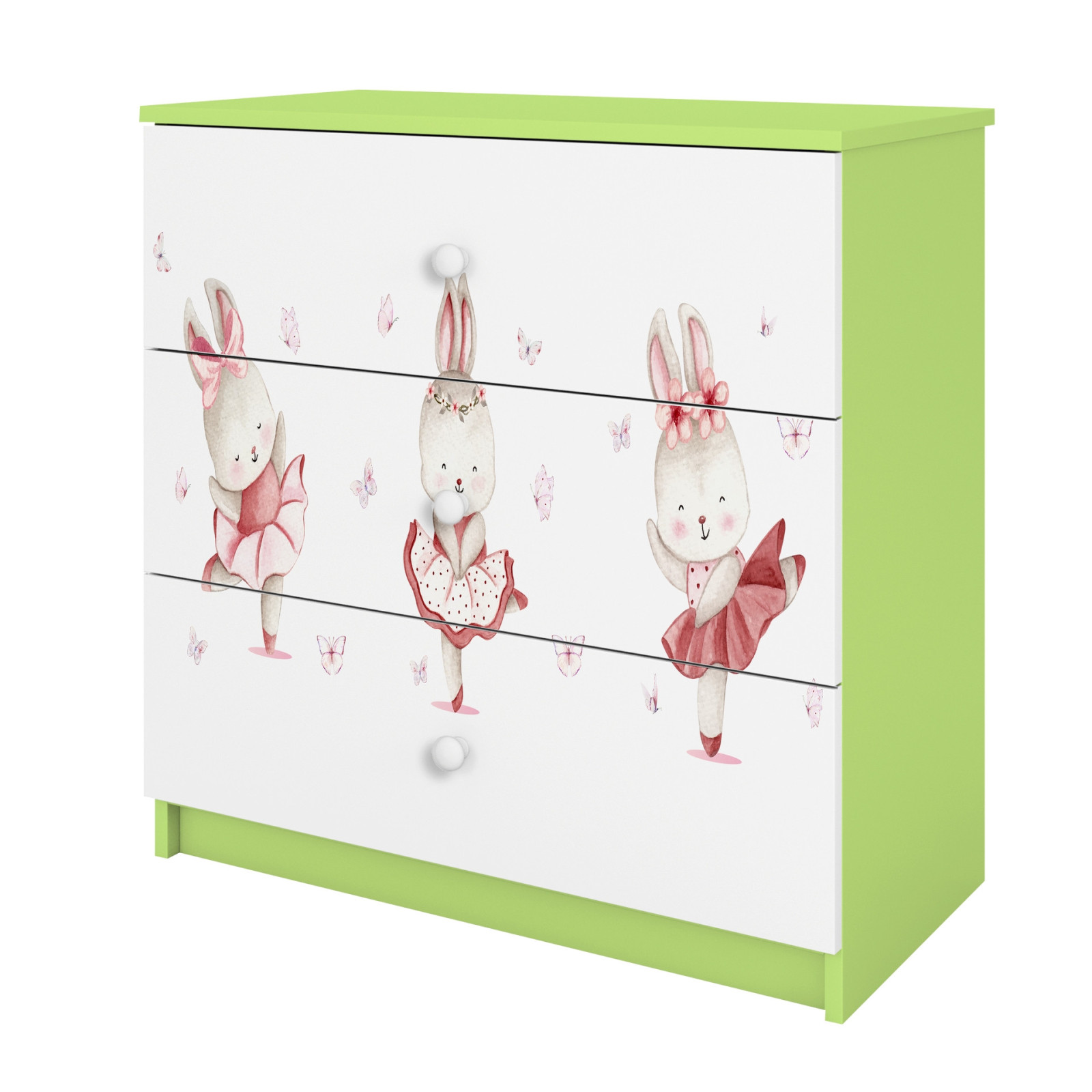 Komoda babydreams zielona Króliczki z motylkami