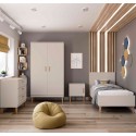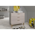 Komoda Kubi na drewnianych, dębowych nogach, podkreślających nowoczesny design i minimalizm aranżacji, sprawdzi się idealnie we współczesnych pokojach dziecięcych oraz młodzieżowych. Meble z kolekcji Kubi wyróżnia funkcjonalność oraz zamiłowanie do ponadczasowej estetyki.