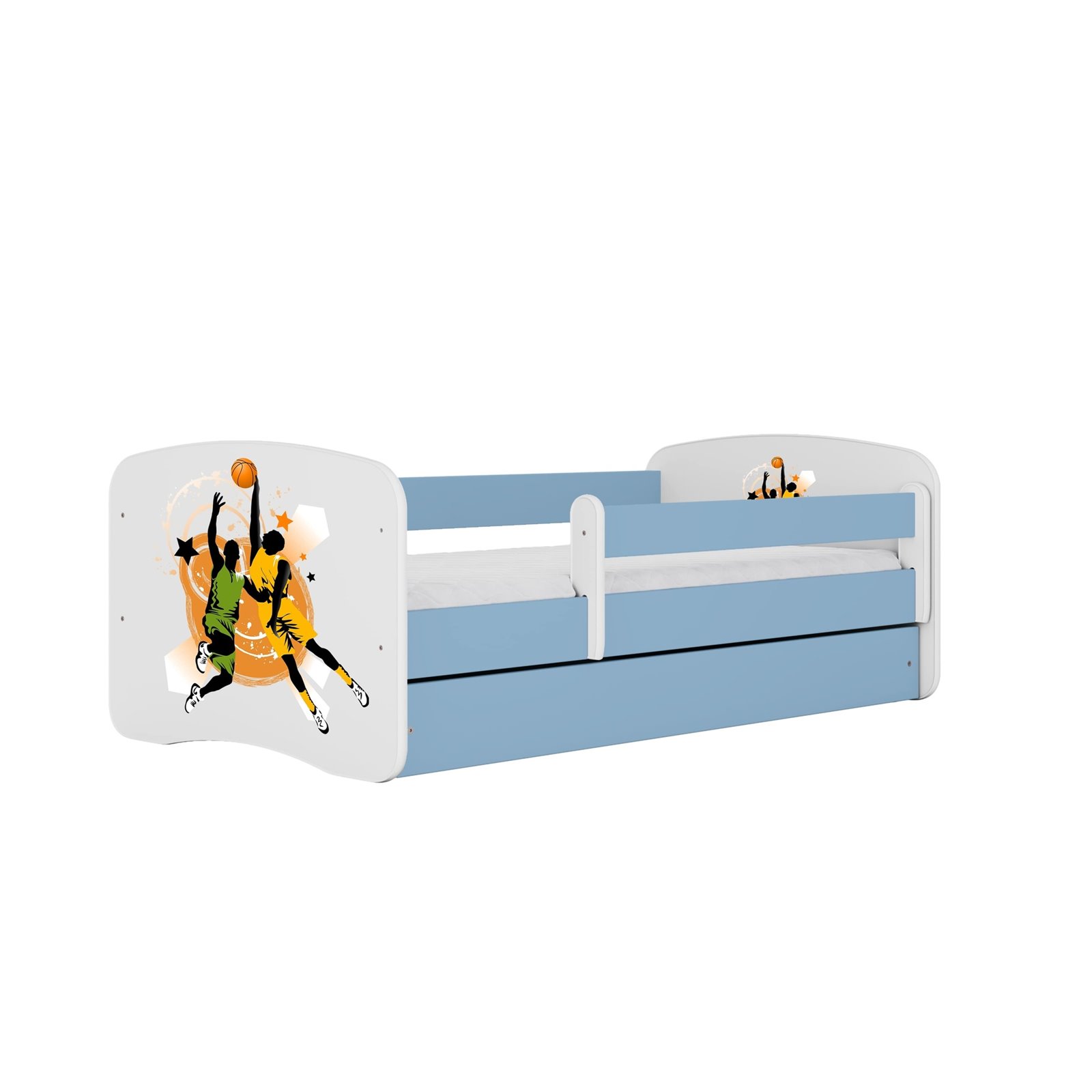 Łóżko dziecięce Babydreams Koszykarze - 140/70, kolor niebieski, materac piankowo-lateksowo-kokosowy
