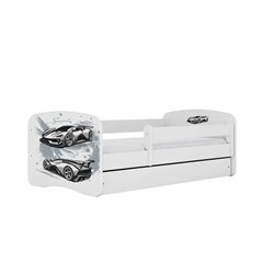 Łóżko pojedyncze z barierką jest wykonane z wysokiej jakości płyty meblowej o grubości 18 mm. Dostępne jest w kilku rozmiarach i wariantach kolorystycznych. Bajkowe wzory zapewniają szeroki wybór i możliwość personalizacji.