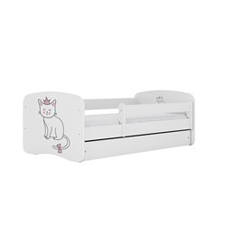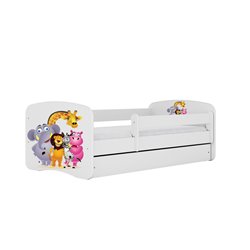 Łóżko pojedyncze z barierką jest wykonane z wysokiej jakości płyty meblowej o grubości 18 mm. Dostępne jest w kilku rozmiarach i wariantach kolorystycznych. Bajkowe wzory zapewniają szeroki wybór i możliwość personalizacji.