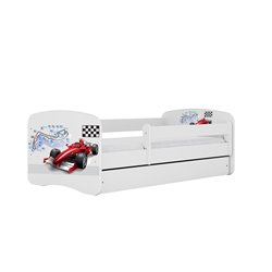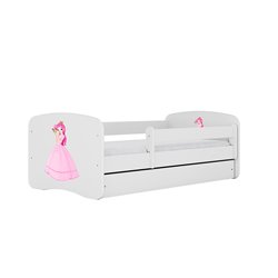 Łóżko pojedyncze z barierką jest wykonane z wysokiej jakości płyty meblowej o grubości 18 mm. Dostępne jest w kilku rozmiarach i wariantach kolorystycznych. Bajkowe wzory zapewniają szeroki wybór i możliwość personalizacji.