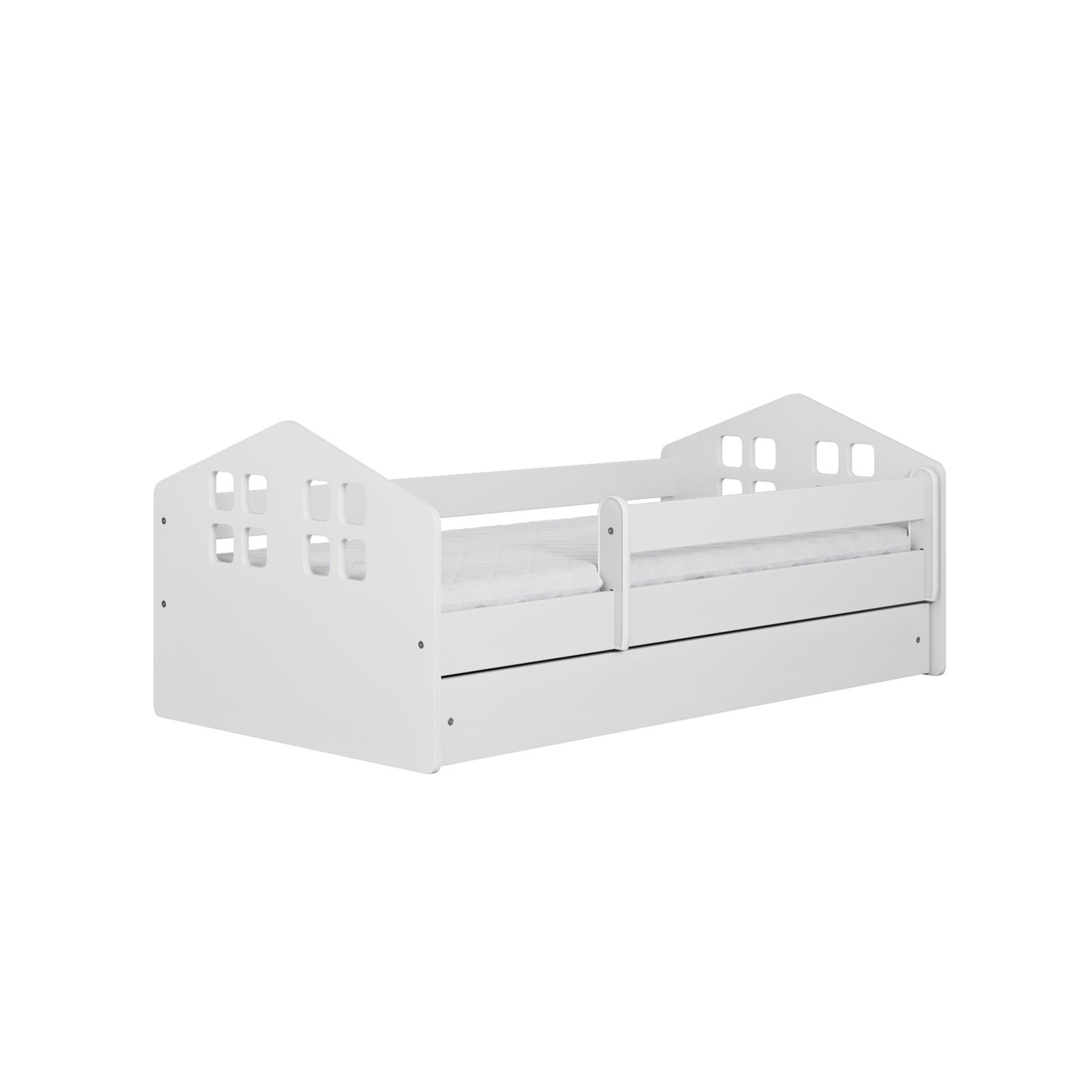 Dla bezpieczeństwa najmłodszych użytkowników łóżko posiada zaokrąglone krawędzie. Poprzez zastosowanie śrub ściągających maksymalne obciążenie łóżka wynosi 100 kg. Ruchomą barierkę można zakładać podczas snu i zdejmować na czas zabawy. Zestaw zawiera sprężysty stelaż typu Flex z listew brzozowych. Opcjonalnie, łóżko możemy wyposażyć w dwukomorową szufladę z kółkami, które usprawnią jej wysuwanie.